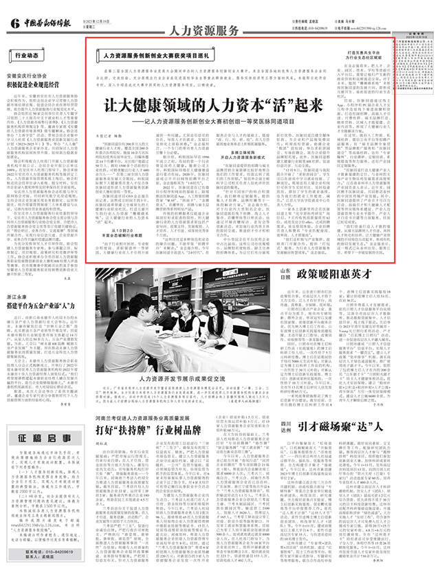 “我们还持续与产业集群、政府部门召开合作,给予‘打包式’服务,为行业人力资源服务开展输出智慧成果。”金志强说。